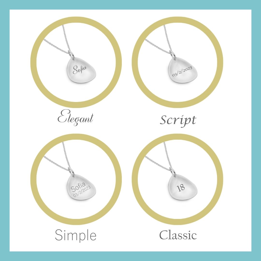 Make this pendant extra special by adding a engraved personalisation for a extra £10, simply choose your font and type your personalisation exactly as you would like it including capitals. Personalised jewellery is excluded from our exchange and returns policy. Please note delivery of engraved items can take up to 10 working days.