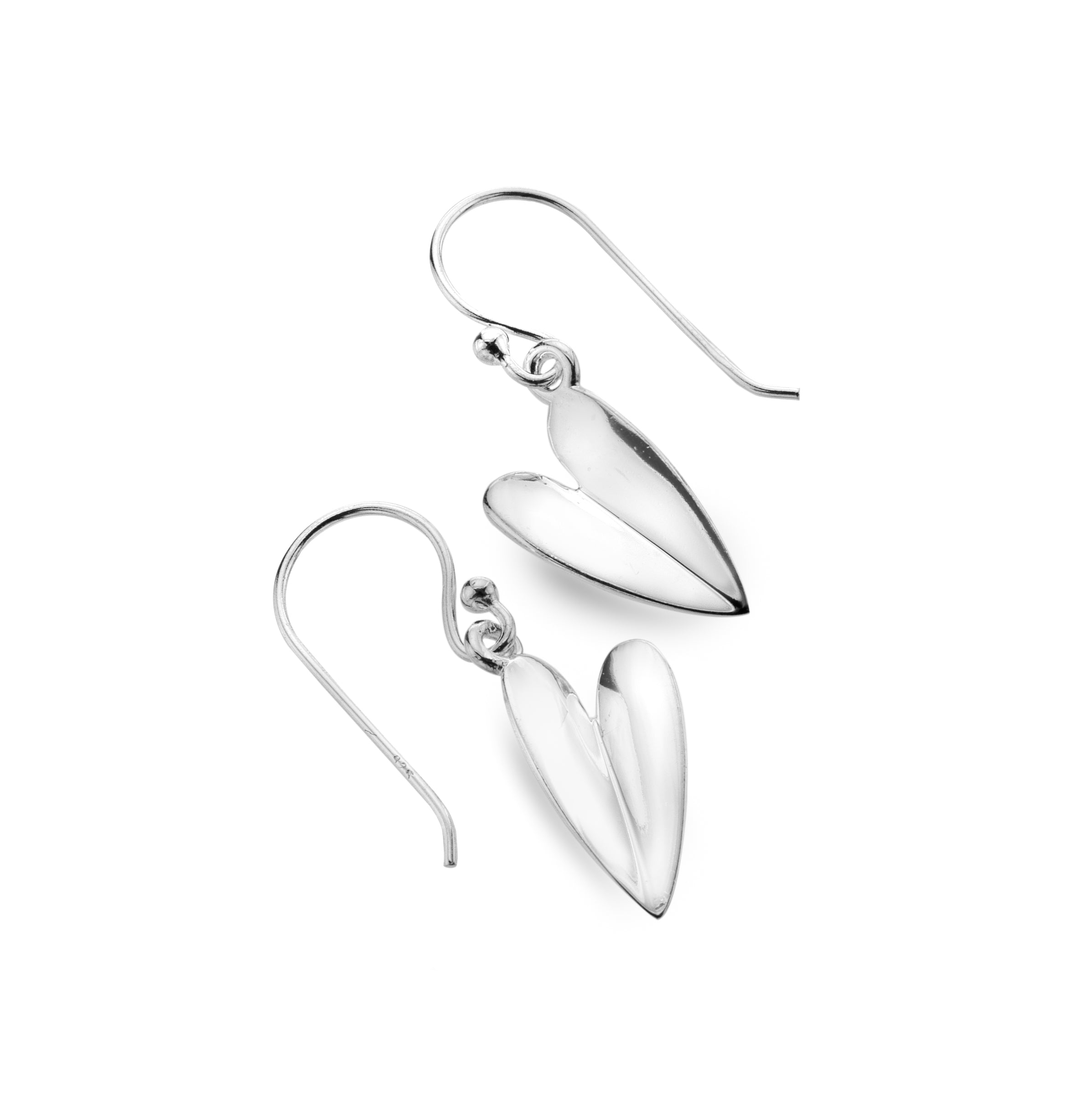 Crafted in sterling silver, these elegant earrings feature elongated hearts with a softly folded centre for a minimal look. Lightweight and understated, they effortlessly stack with everything. Finished with a smooth, high-shine texture, this timeless piece makes a meaningful gift for someone special.