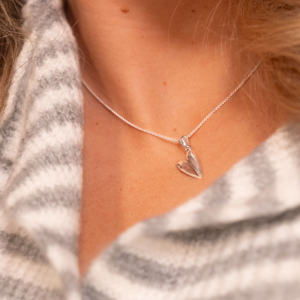 Crafted in sterling silver, this elegant pendant features an elongated heart design with a softly folded centre for a minimal look. Lightweight and understated, it effortlessly pairs with everything. Finished with a smooth, high-shine texture, this timeless piece makes a meaningful gift for someone special.
