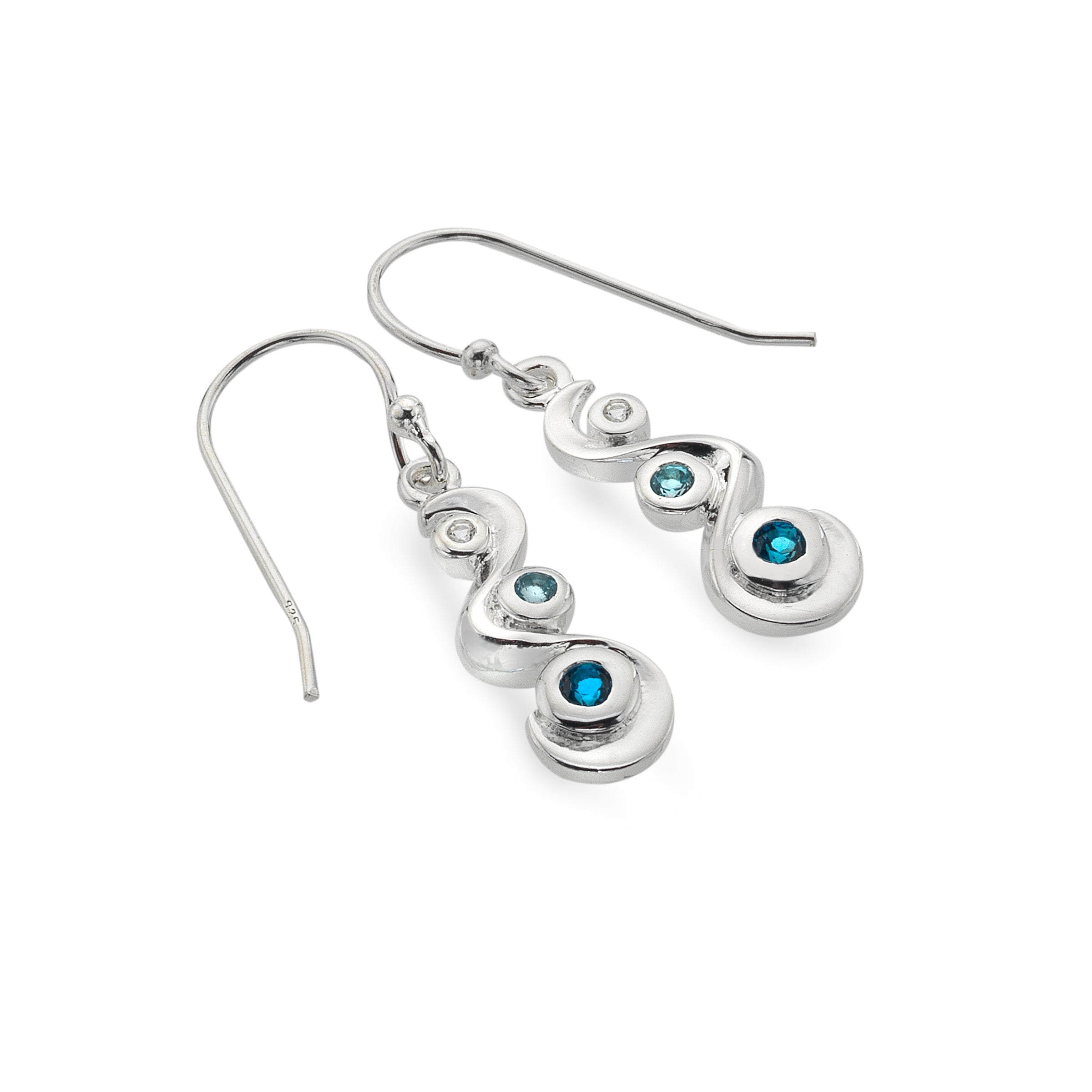 Inspired by the graceful movement of Cornish streams these sterling silver earrings feature a trio of topaz gemstones arranged in a delicate, flowing gradient. From the clear brilliance of white topaz to the airy hue of sky blue topaz, and finally the rich depth of London blue topaz. Can be worn with matching pendant and includes a 100% recyclable gift box.