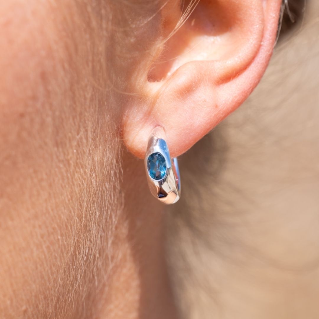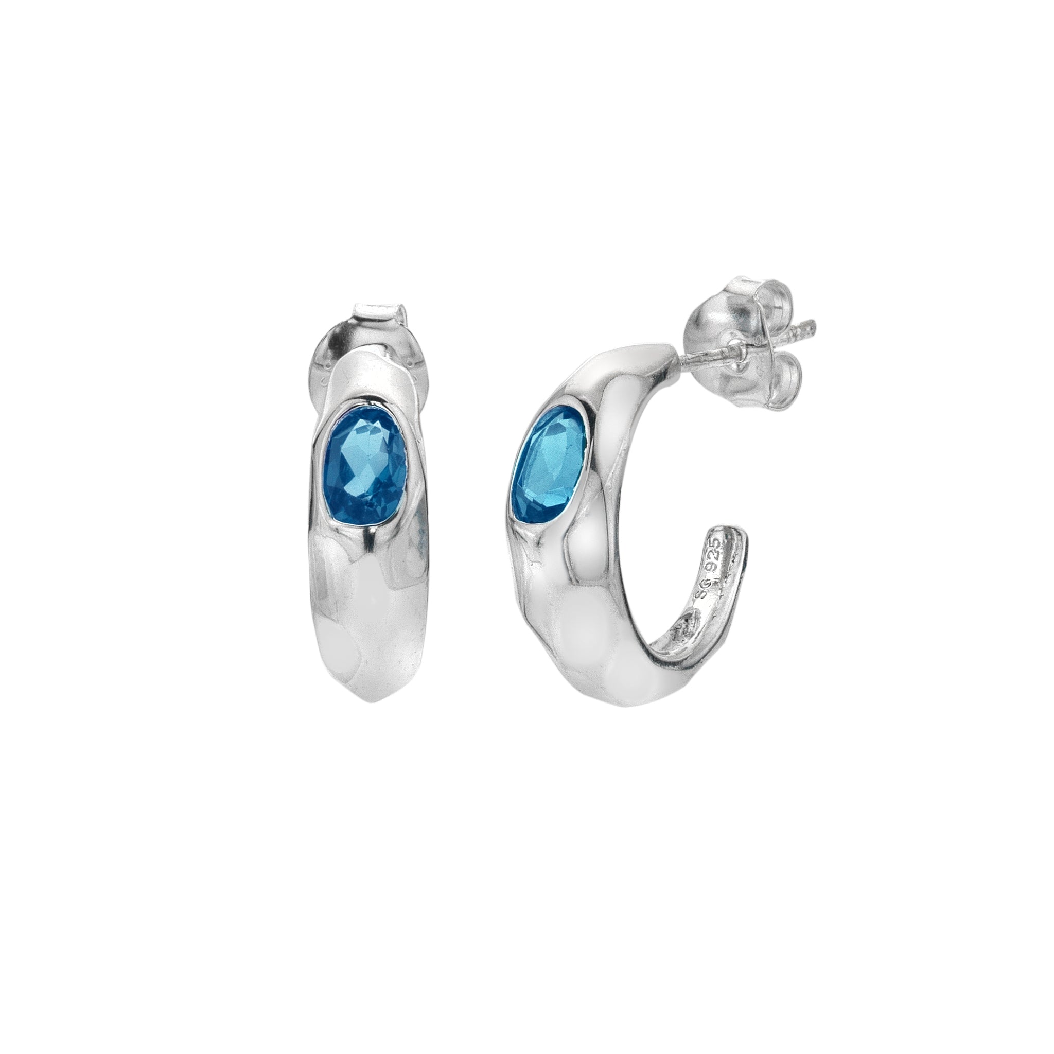 Inspired by the secret coves, naturally formed around Cornwall, these chunky Cove Hoops feature a deep London Blue Topaz stone in the centre. The sterling silver hoops are lightly hammered meaning they gently catch the light with each movement. Elegant and stylish, they elevate any outfit and make a beautiful gift for someone special.