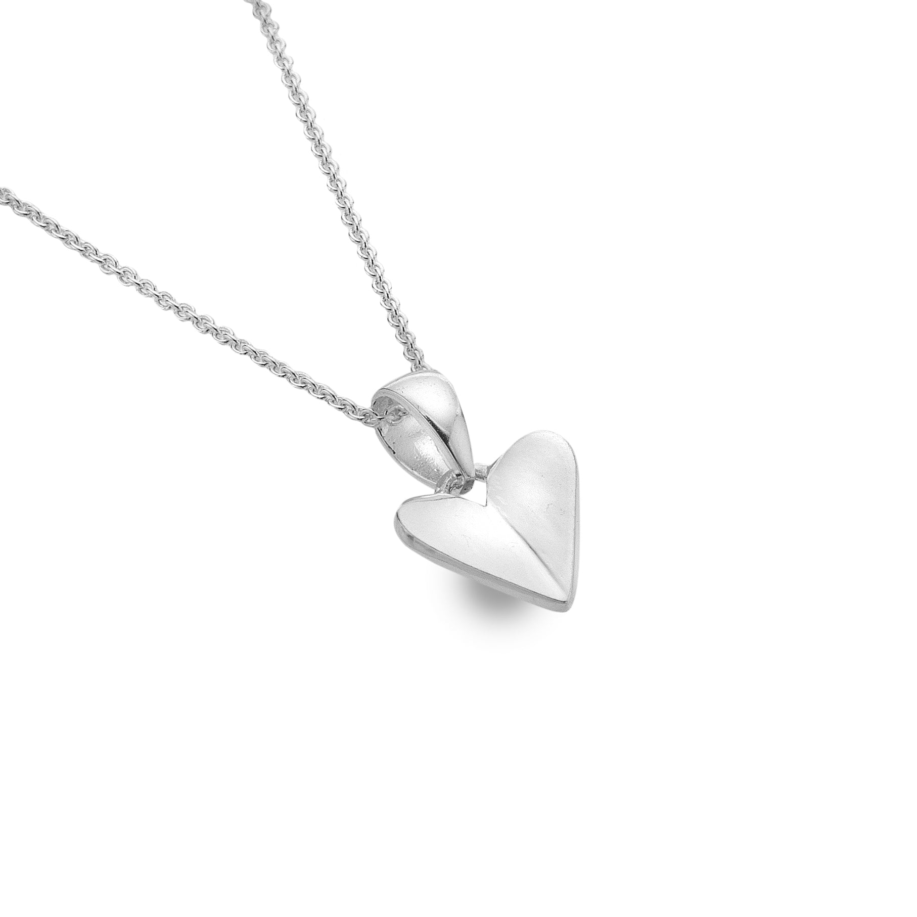 Delicate and refined, this Kerensa Pendant features a minimal heart design handcrafted from sterling silver. The folded heart design symbolises two halves uniting as one and makes a meaningful gift. Includes finest Italian made sterling silver extender chain and luxury branded gift box.